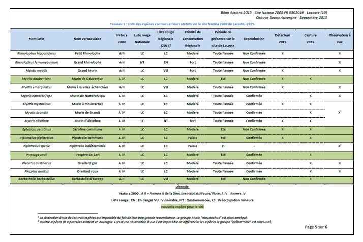En 2015, deux soirées d’écoutes ultrasonores et de capture ont permis d’améliorer les connaissances sur les espèces présentes l’été dans les gorges. Cinq espèces supplémentaires ont pu être identifiées.